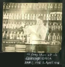 In Drug Store in Lakemp, Okla, 1916.
